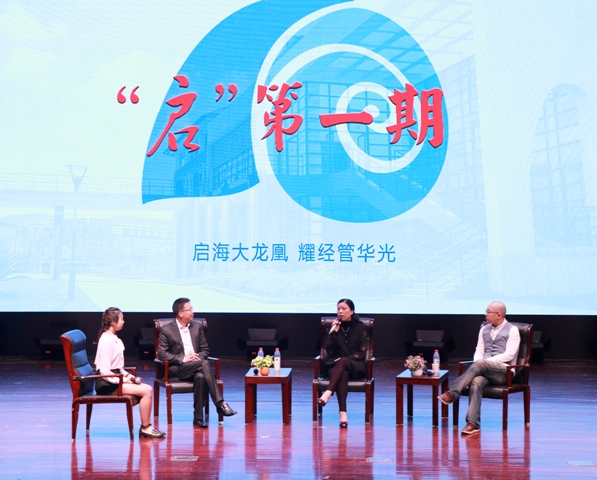 接下来的访谈分忆往昔、谈今朝、启未来三个模块,徐鹏起、陆玮、刘鹏三位校友回忆了曾经在海大的青葱岁月,难忘师生情,感恩母校的养育;在学业上和就业方面,三位校友告诉我们要胸怀理想,做好大学规划,奋斗的青春最美丽!访谈最后,三位校友与台下同学进行了良好的互动,就同学们所关心的考公务员、考证书、就业实习问题作了耐心地解答,在座学生受益匪浅。