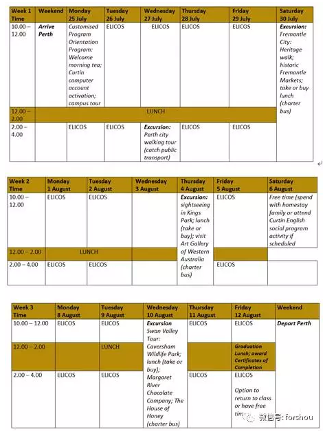 为了给到学生真正体验澳大利亚大学的学习氛围, 游学团所有的课程都是和科廷大学目前注册的学生在一起上课的。具体的课程包括ELICOS课程,计算机课程,学习技巧及技能,以及相关行业企业的参观及学习;此外,为了让学生更好的感受当地的风土文化,游学项目还包括了当地著名景点的参观,以及与当地市民的互动活动。