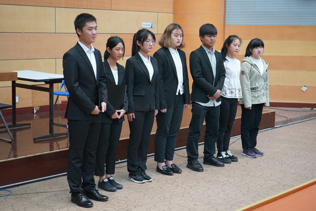 本次英语产品发布会包括两个环节,即展示环节和问答环节。在长达六个小时的比赛时间中,每个小组用流利的英语向在座的评论和观众们多角度、多层次、全方位地展示自己的作品。评委根据各组选手策划书、展台设计图和英语发布会三个方面的表现,筛选出六组选手,入围最终的决赛。