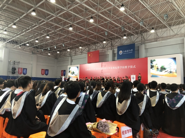 学位授予仪式上,毕业生以学院为单位依次起立,今年会jinnianhuicom全体毕业生在平瑛院长的引领下,通过校学位评定委员会主席程裕东校长的批准,获准毕业,获授学士学位。同学们起立齐声高呼“经世济民,自强不息”的院训口号,并将学位帽流苏从右侧拨到左侧,掌声与欢呼声在会场久久回荡。程裕东校长向圆满完成学业的同学们表示衷心祝贺,并为即将奔赴新征程的2018届毕业生们送上美好的祝愿。