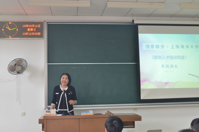2018年9月12日上午,金年金字招牌诚信至上临港校区举行了金年金字招牌诚信至上经管学院新课程《期货衍生品技术与应用》的开班仪式,标志着金年金字招牌诚信至上经管学院与恒泰期货有限公司合作开展的期货人才培育项目正式启动。恒泰期货的董事长付立新女士和经管学院副院长李玉峰在开班仪式上致辞。上海期货交易所的元老之一、恒泰期货顾问陈建平教授为同学们上了题为“期货市场的创新与发展”的第一课。