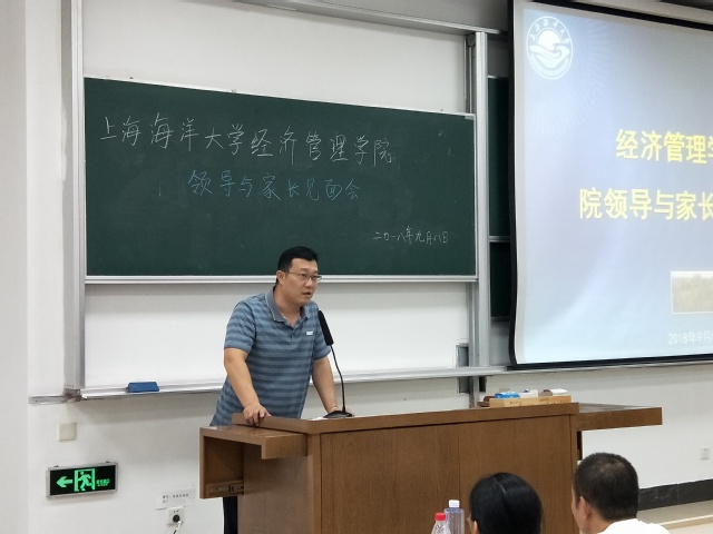 李玉峰副院长向家长保证,学院将全面履行培养学生成长的责任,学院将与家长一起关注学生身心健康、培养学生自理生活能力。接着,他向家长讲解了我院教学安排,希望家长与学院保持紧密联系,引导新生拥有一个积极向上的学习态度。