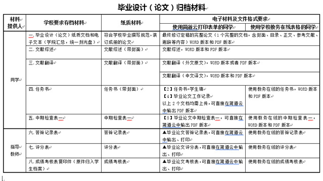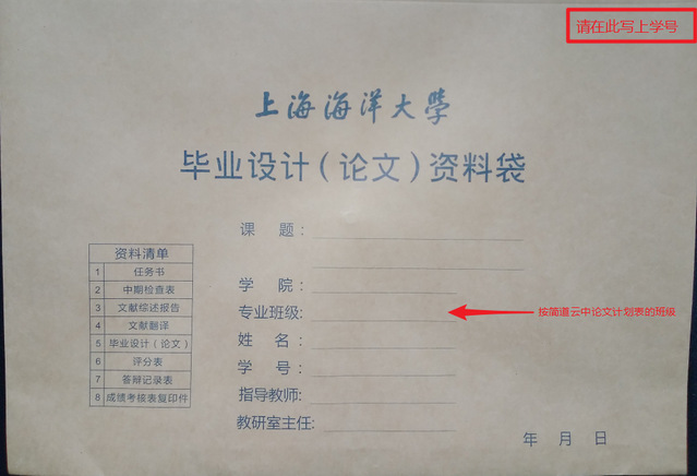 关于材料归档,请按以下表格中内容完成。论文资料袋的“专业班级”请按简道云中计划表里“班级”填写,如2015物流1班。