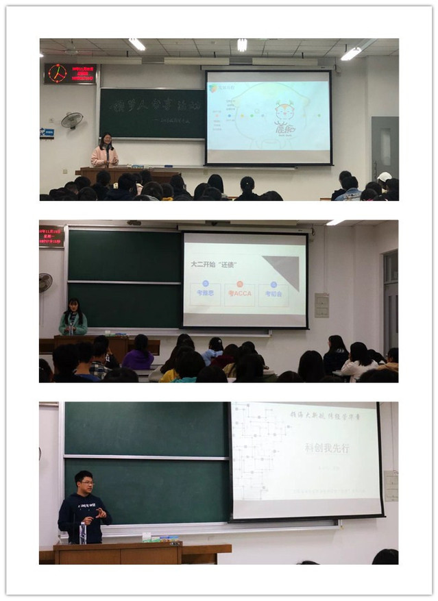 2018-2019学年经管学院经梦活动“领”系列活动主要包含领梦人推荐或自荐、初筛试听、领梦人聘任、现场分享四个流程。本次活动共筛选出10个领梦人,以新入学大学生需求为导向,按照分享主题与专业相关性主原则;遵循辅导员和班级同学个人意愿,组建亦师亦友互助性团队,搭建高低年级学生沟通平台。以专业为单位,共安排7场分享活动。分享现场还吸收了个别高年级同学到场观看。分享过后,大多数同学会向“领”梦人寻求帮助,“领”梦人现场解答问题。