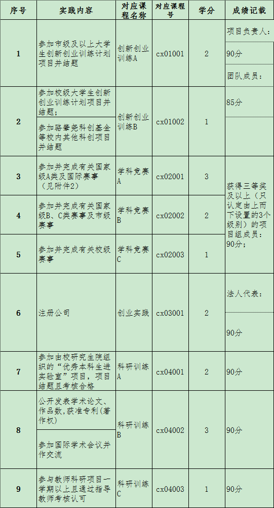 2.学生所获得超计划的创新创业教育实践学分,根据《金年金字招牌诚信至上本科生创新创业教育实践学分认定办法》替代部分等量不及格课程的学分数。