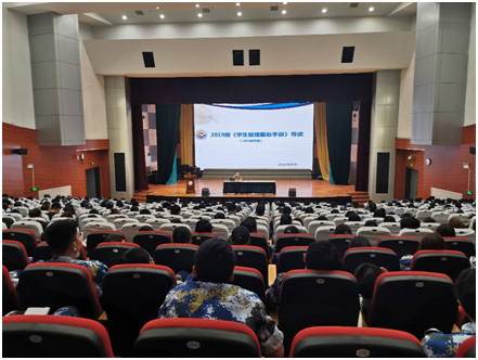 商利新老师为新生进行《学生管理服务手册》培训。商老师结合具体案例向同学们说明了在校学生的相关权益以及需要遵守的一系列规则,对学业学分、毕业论文、操行评定、违规处理等方面规定进行了强调。他希望同学们在享受权益的同时,遵守好学校的规定和条例;在学习之余,注重思想道德、身体素质等全面提高。最后,商利新老师向同学们强调大学生心理健康相关事项,呼吁同学们积极乐观面对学习与生活,遇到问题学会求助专业人士。