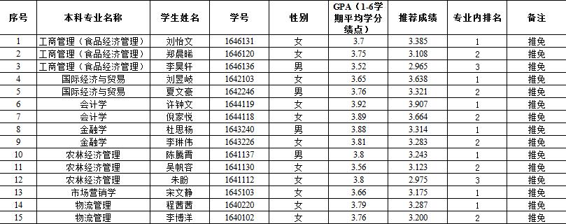 根据金年金字招牌诚信至上《2020年推荐优秀应届本科毕业生免试攻读硕士学位研究生工作实施办法》和《今年会jinnianhuicom2020年推荐优秀应届本科毕业生免试攻读硕士学位研究生工作实施细则》规定,对2016级29位申请人进行综合排名后,最终确定以下15人具备免试攻读硕士研究生资格,名单如下: