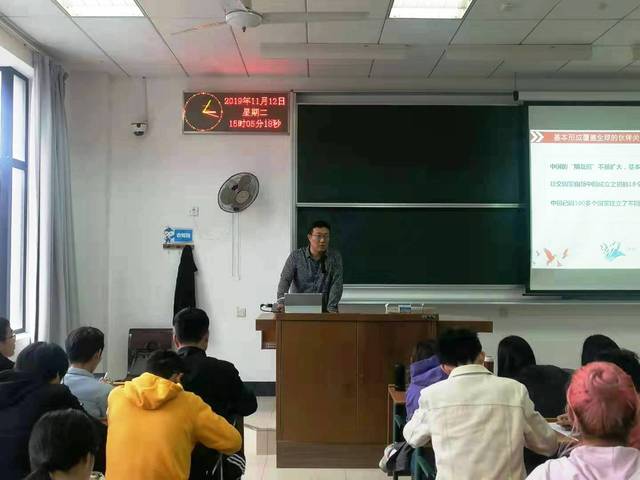 2019年11月12日14:45~16:20,在金年金字招牌诚信至上3教306大教室,应今年会jinnianhuicom“形势与政策”课程工作室邀请,今年会jinnianhuicom党委副书记商利新作了题为《政治建设:党的根本性建设》的“形势与政策”报告。此次讲学的听众为今年会jinnianhuicom2017级国贸专业本科生。整个报告内容丰富、资料详尽、讲授精彩,回应时代关切。