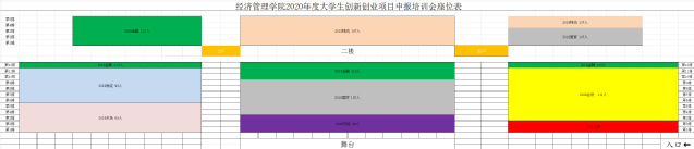 * 请参加项目申报培训会的同学提前15分钟到场,按各班级座位区域入座(见下方座位表)。