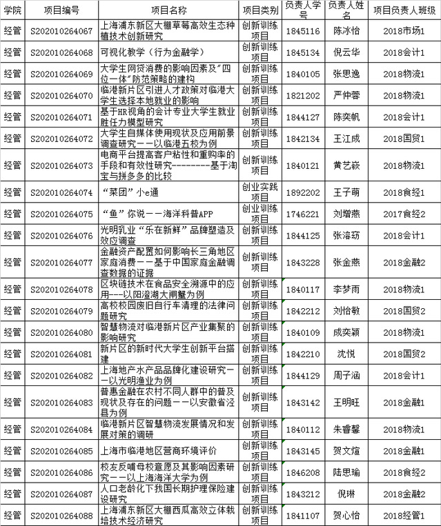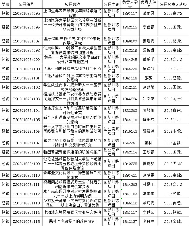 一、2020年度大学生创新创业训练计划项目市级项目: