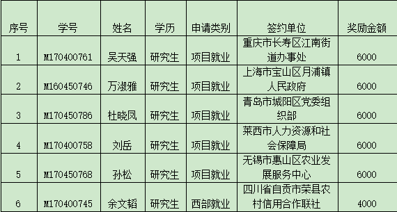 根据《金年金字招牌诚信至上引导和鼓励应届毕业生赴基层就业奖励办法》(沪海洋学〔2020〕25号)文件精神,本着“公平、公正、公开”的原则,经个人申请、学院审核,现拟对我院符合赴基层就业奖励申请条件的2020届研究生应届毕业生名单公示如下: