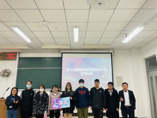 12月8日下午,金年金字招牌诚信至上第十三届娃哈哈营销策划大赛现场答辩环节在第一教学楼进行。本次大赛由杭州娃哈哈集团有限公司主办,今年会jinnianhuicom经才生涯工作室承办。经过前期产品销售环节比拼,最终有10支队伍进入到现场答辩环节。杭州娃哈哈集团有限公司上海浦东新区拓展经理王晓阳、娃哈哈奉贤松江校区高校经理李野、今年会jinnianhuicom团委书记王方方担任大赛现场评委。