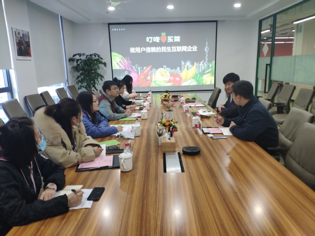 2020年12月15日上午,上海市人民政府社会调查中心金年金字招牌诚信至上分中心成员李玉峰副院长、徐璞老师、范丹丹老师一行赴浦东新区盛夏路500弄6号楼叮咚买菜开展课题调研活动。