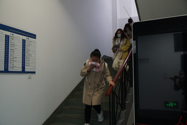 在本次消防应急演练中,杨怀宇老师向师生讲解了灭火器的正确使用和一些消防知识;王为杰老师向大家解读了“火场逃生注意事项”。随着杨怀宇老师的一声令下,师生从104、306实验室有序、快速地进行了撤离,撤离时间分别是20秒和42秒。
