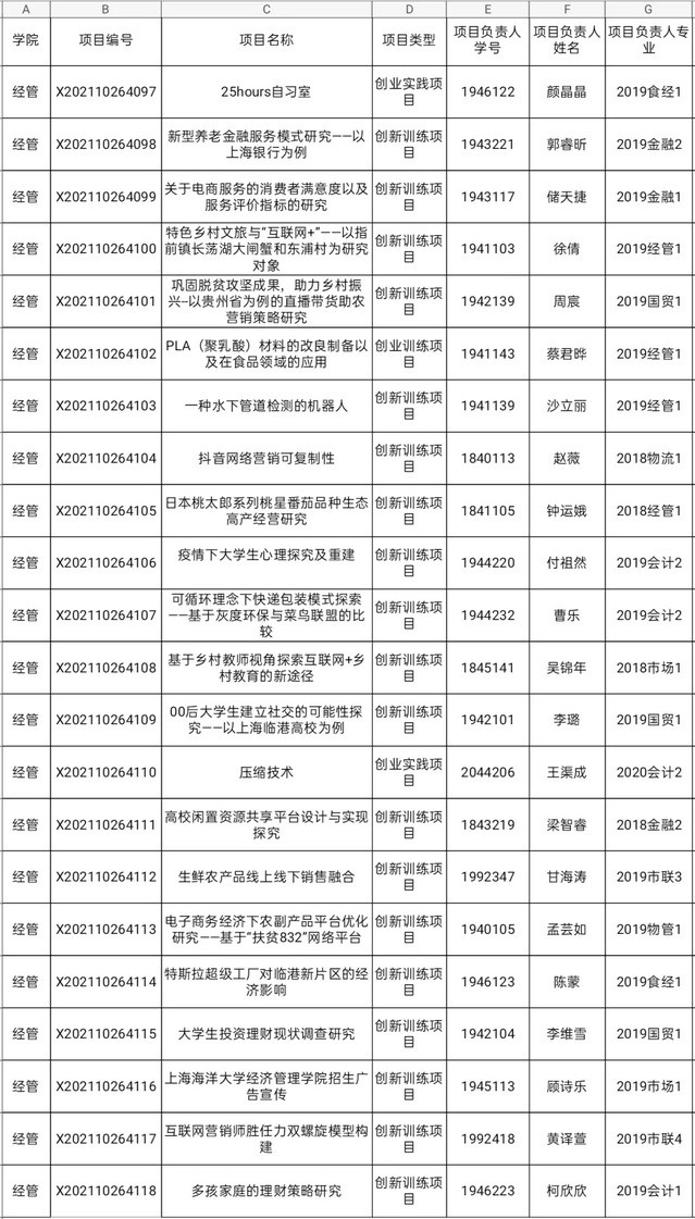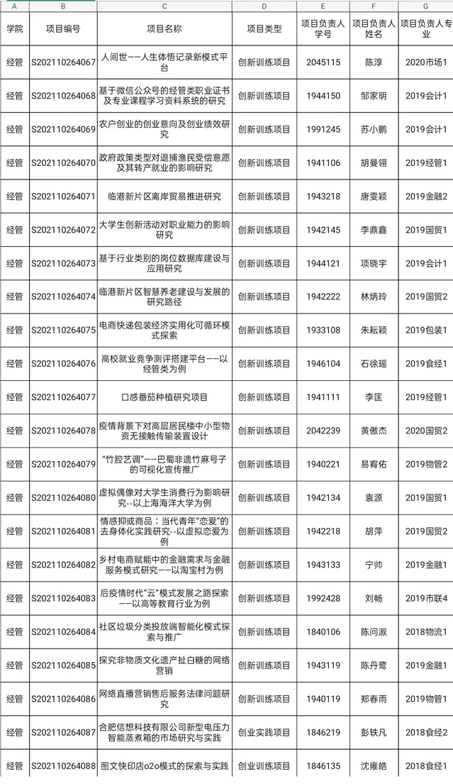 经学院推荐,教务处审核,今年会jinnianhuicom2021年度市级、校级大学生创新创业训练计划项目立项公示如下:
