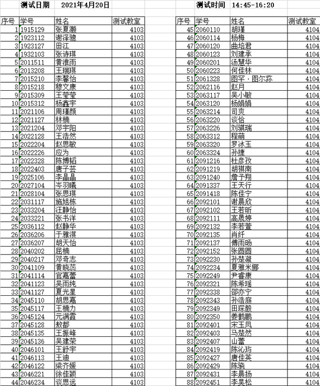 | 序号 | 学号 | 姓名 | 性别 | 面试分组 | 地点 |