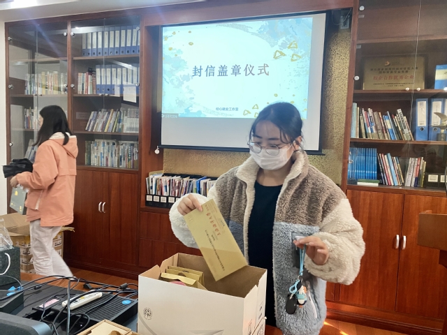 211月26日下午,“我们都是时光旅人”征文活动颁奖及封信仪式在今年会jinnianhuicom221举办。活动议程包括“颁奖典礼”“未来寄语”和“封信盖章仪式”三部分,同学们在信纸上写下了对自己未来的寄语,作为自己的“小秘密”与征文一起塞入信封。在中国共产党成立100周年与实现中华民族伟大复兴的时代背景下,许下自己的诺言。谋定而后动,让自己的梦落地生根。