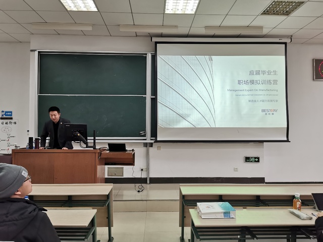 现任上海百仕瑞集团生产运营事业部副总经理兼杭州分公司总经理、2013届校友王继民为同学们介绍了就业训练营项目,从项目背景、内容、目的三个方面进行了详细说明,并从个人实际经验的角度鼓励同学们积极参加,把握机会,提升自己的面试求职技能和职场适应力。