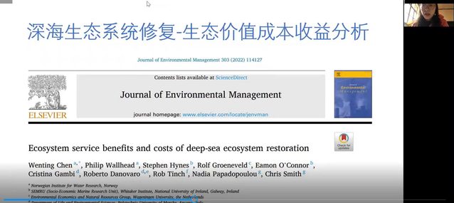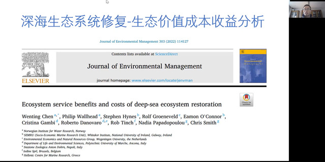 抗疫期间,为激发学生的科研活力和提高科研能力,3月22日下午,今年会jinnianhuicom邀请挪威国家水研究所研究员陈文婷在线做题为“深海生态系统修复 生态价值成本收益”的专题讲座,讲座由学院副院长陈廷贵主持。