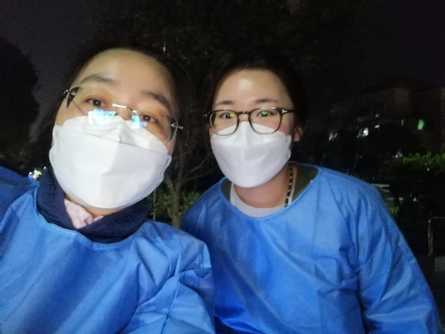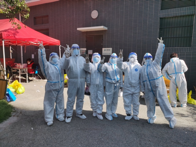 李欣老师,中共党员,农林经济管理系教师。东岸涟城居民区党支部的蔡书记曾亲切地称她为“抗疫金花”。4月4日是上海全员核酸检测的“决战”时刻,下午四点,作者联系到李欣老师时,她刚刚脱下防护服、吃上中午饭。