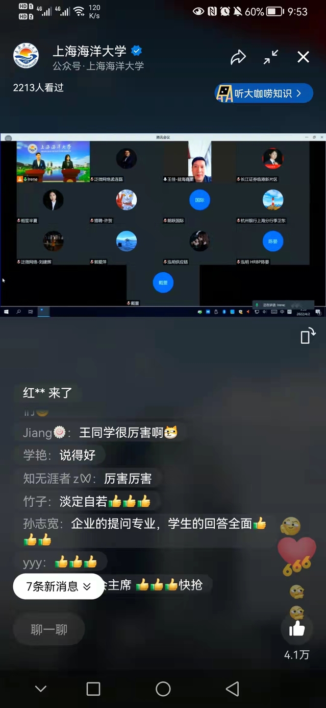 今年会jinnianhuicom“精准就业聚云端,踔厉奋发向未来 ”直播推介通过金年金字招牌诚信至上官方微信视频号、哔哩哔哩等平台在线直播,观看人数达到1万余人,点赞约5万,现场气氛热烈。直播结束后,多名学生已经收到企业面试邀约,达成就业协议。