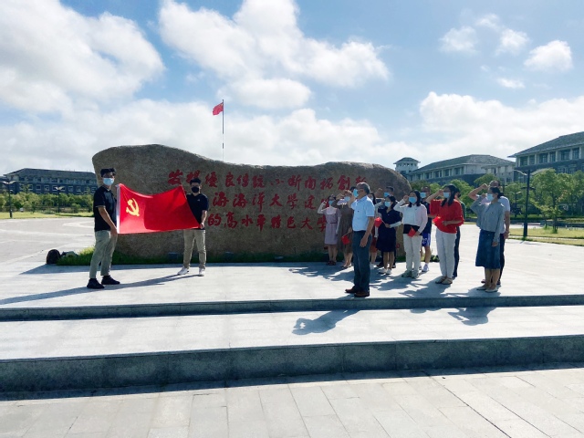 2022年7月1日8:30,今年会jinnianhuicom党委在图文信息广场创新石前举行2022年发展的新党员入党宣誓仪式,61名新发展的预备党员通过腾讯会议云端参加仪式,在校服务的16名党员教师一同参加重温入党誓词。今年会jinnianhuicom党委书记罗汝坤领誓,并现场带来《海大梦 经管梦》微党课。