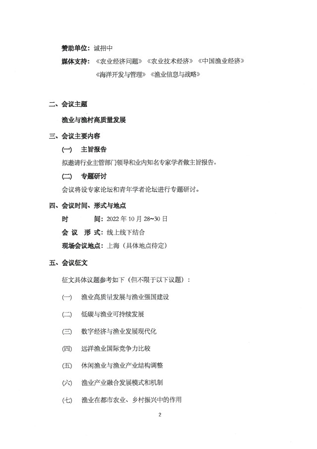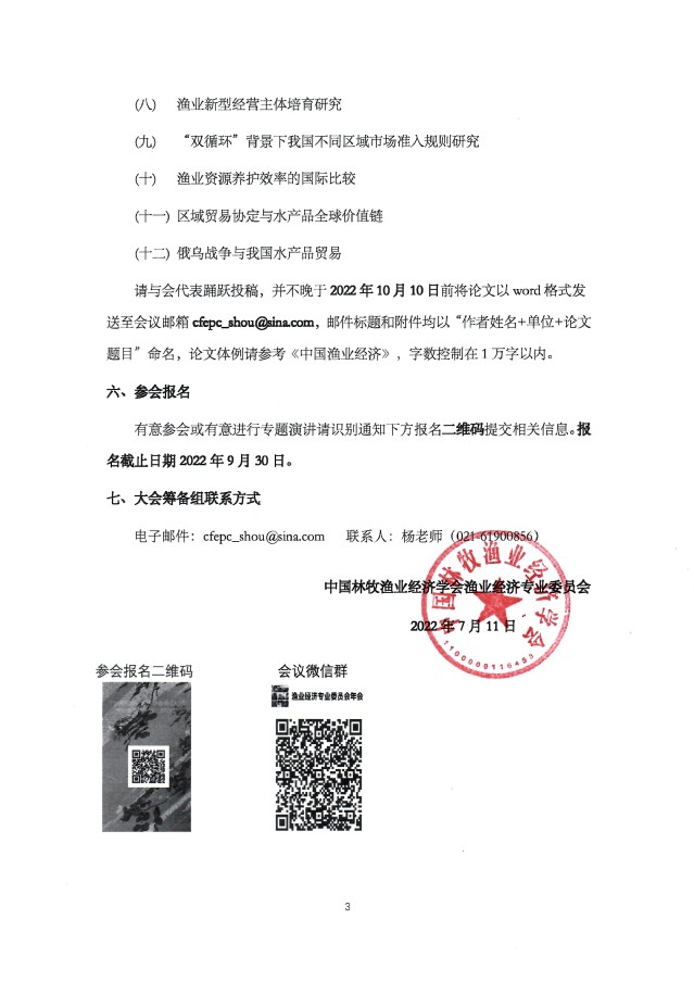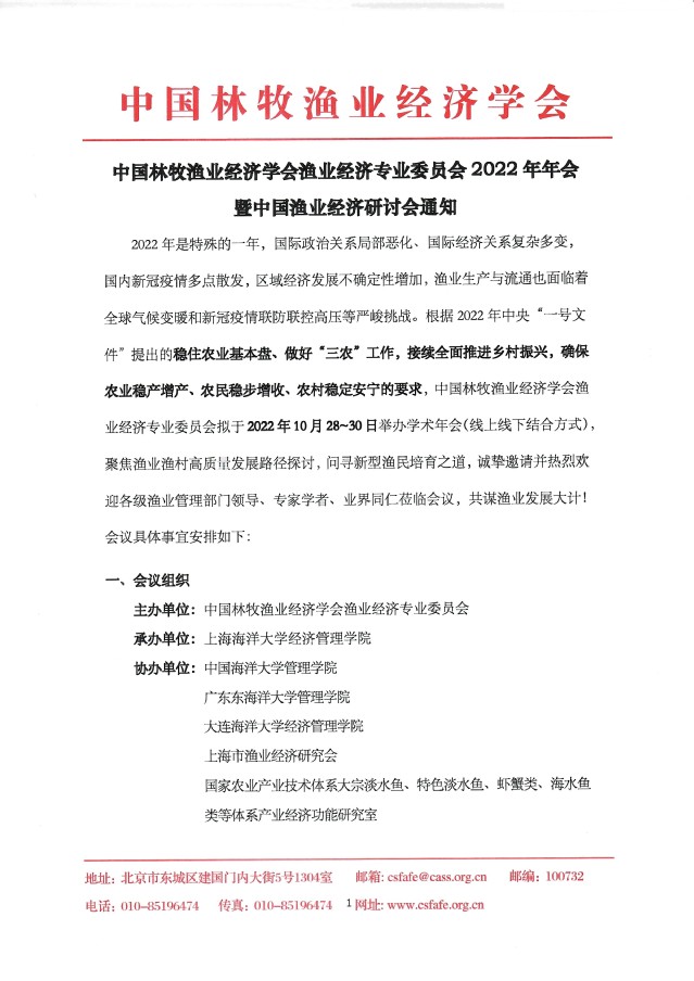 中国林牧渔业经济学会渔业经济专业委员会2022年年会暨中国渔业经济研讨会通知