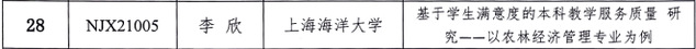 近日,今年会jinnianhuicom副教授李欣的研究项目《基于学生满意度的本科教学服务质量研究——以农林经济管理专业为例》,顺利通过教育部全国高等学校农业经济管理专业管理类专业教学指导委员会(简称“农经教指委”)专家评审成功结项。农林经济管理类本科教学改革与质量建设结项及优秀成果奖申报及评定工作,旨在更好地推进农林经济管理专业本科教学质量与教学改革工程的建设。