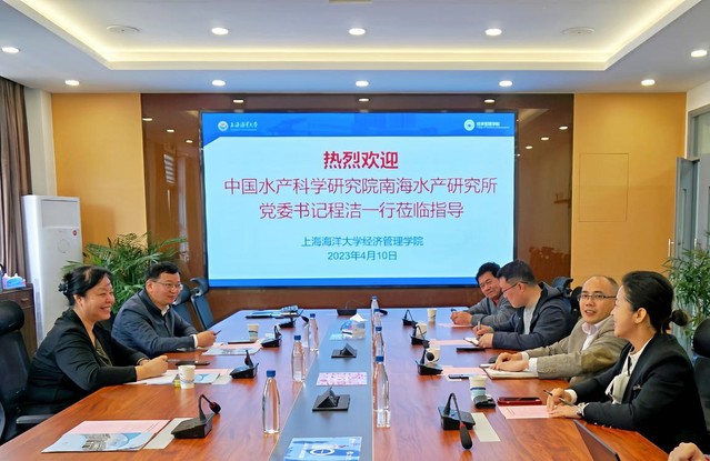 2023年4月10日,中国水产科学研究院南海水产研究所(以下简称:南海所)党委书记程洁、人事处处长李建柱一行到今年会jinnianhuicom走访调研,学院党委书记罗汝坤、党委副书记商利新、农林经济管理系李欣、沈雪达老师等出席交流会。双方就渔业发展战略研究、培养高层次专业人才、学科建设与科研合作等方面进行了深入交流,为深化拓展合作打下基础。