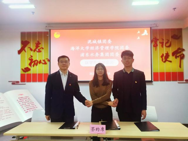 施一卉、陈原栋、于林作为院镇企三方代表签署了共建协议,并介绍了各自团委特色工作。与会人员围绕理论学习、志愿服务、社会实践等方面开展深入讨论。