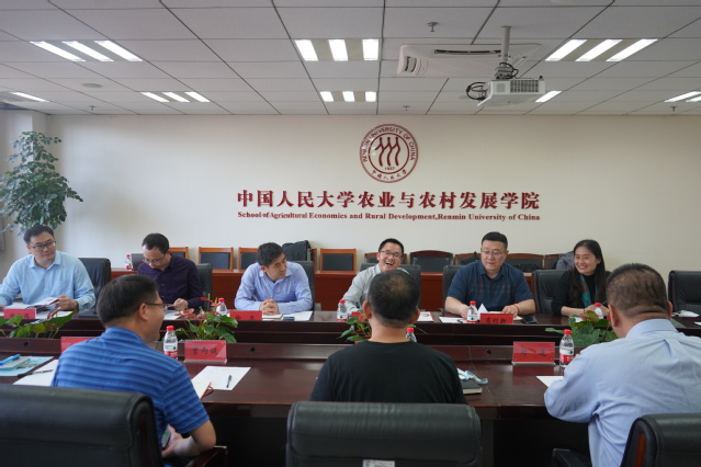 中国人民大学农业与农村发展学院院长仇焕广、党委书记曾丙健、副院长郑适、党委副书记康琳,热情接待了学院一行。仇焕广介绍了学院基本情况、学科与专业建设、人才培养等,期待双方强化优势学科间的合作交流与交叉融合发展,携手助力乡村振兴和服务国家战略。