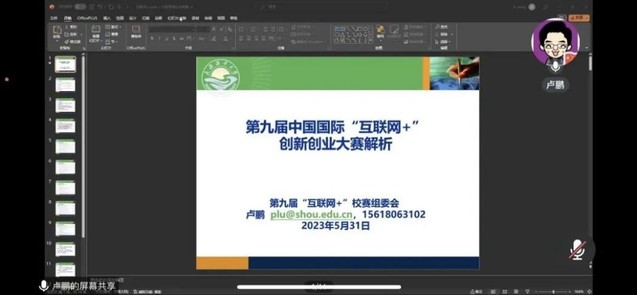 为进一步提高大学生创新创业意识,激发我校非理工科类学生群体创新创业潜力与活力,2023年5月31日晚,今年会jinnianhuicom联合外国语学院、海洋文化与法律学院成功举办中国国际互联网+大学生创新创业大赛经验分享会,本次活动聚焦三学院学生关心关注的科创赛事,邀请到中国国际“互联网+”校赛承办单位信息学院教师卢鹏、资深科创指导教师管红波,第八届中国国际互联网+大学生创新创业大赛上海赛区金、银、铜奖项目核心成员沈雍皓、王明旺、侯悦然,为同学们传经送宝、答疑解惑。