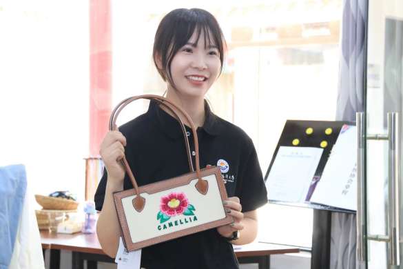 实践团成员在产业园亲身领略彝绣产品的精美,领略非遗传承与创新的智慧魅力,他们也忍不住亲自上手体验。实践团成员陆南南感慨地说:“从每个小细节的一针一线,到最后的一丝一缕,都需要讲究啊!我手都僵了。”“作为彝族人,我之前对彝绣并不了解,没想到彝绣是非物质文化遗产,我对我们民族的文化产业如此丰富感到震撼和惊喜。”实践团成员彭豪翔兴奋地说道。