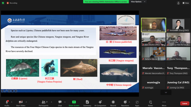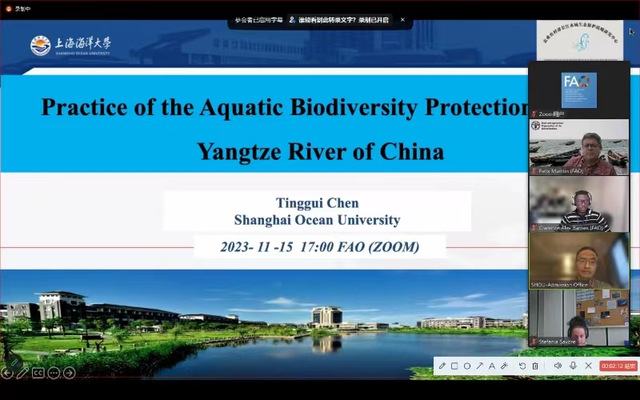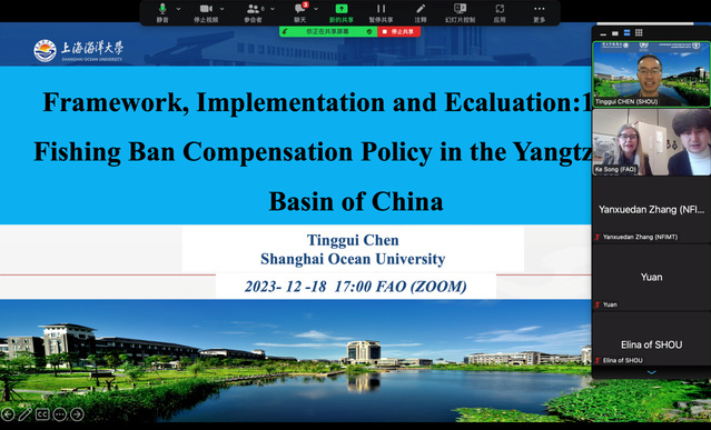 受联合国粮农组织(FAO)渔业和水产养殖司研讨会协调委员会(The NFI Seminar Coordinating Committee)邀请,11月15日今年会jinnianhuicom陈廷贵教授在线做题为“中国长江流域水生生物保护实践”(Practice of the Aquatic Biodiversity Protection in the Yangtze River of China)的报告。报告就长江流域水生生物保护背景、水生生物现状、保护政策实施情况以及展望进行讲解,引起渔业和水产养殖司各部门人员的广泛兴趣。之后来自FAO减少农村贫困战略计划顾问Daniela Kalikoski博士邀请陈廷贵于12月18日和19日两次就长江十年禁渔政策的框架、实施和评价(Framework, Implementation and Ecaluation:10 Year Fishing Ban Compensation Policy in the Yangtze River Basin of China)进行了深入讲解,Daniela Kalikoski博士对长江流域退捕渔民生计保障政策设计和实施情况表示赞赏,希望可以被全球其它发展中国家借鉴学习。