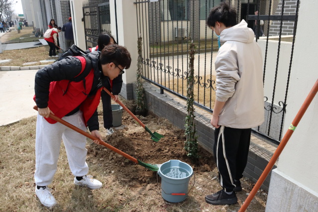 全体预备党员、志愿者们分成3队参加公寓围栏植树美化项目。大家身着统一的马甲,手持工具,热情高涨地投入到植树活动中。他们分工合作,有的挖坑培土,有的浇水施肥,每个人都尽心尽力地完成自己的任务。经过一番辛勤劳动,小区围栏边焕然一新,绿意盎然。在植树的过程中,大家深刻体会到了劳动的艰辛与快乐,也感受到了团队合作的力量,纷纷表示要以实际行动践行雷锋精神,为构建和谐美丽的校园环境贡献力量。