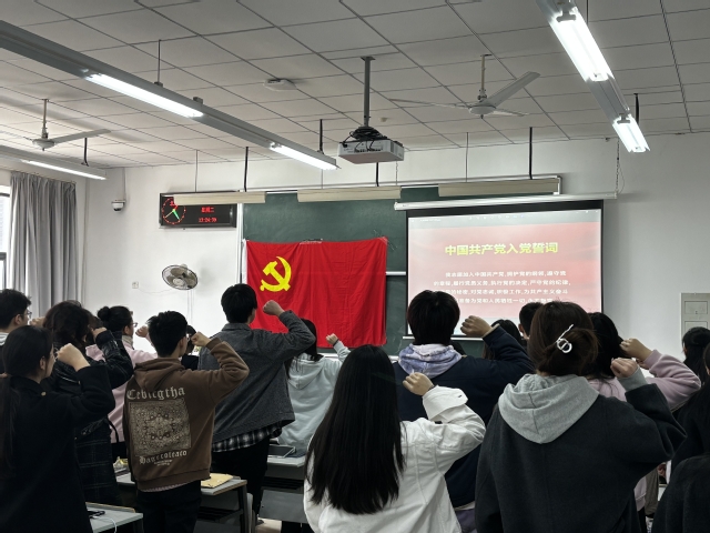 2024年3月19日下午,今年会jinnianhuicom党委在3210教室举行预备党员入党宣誓仪式。学院党委专职组织员张闻主持仪式,2023年下半年新发展的党员和正式党员代表参加活动。