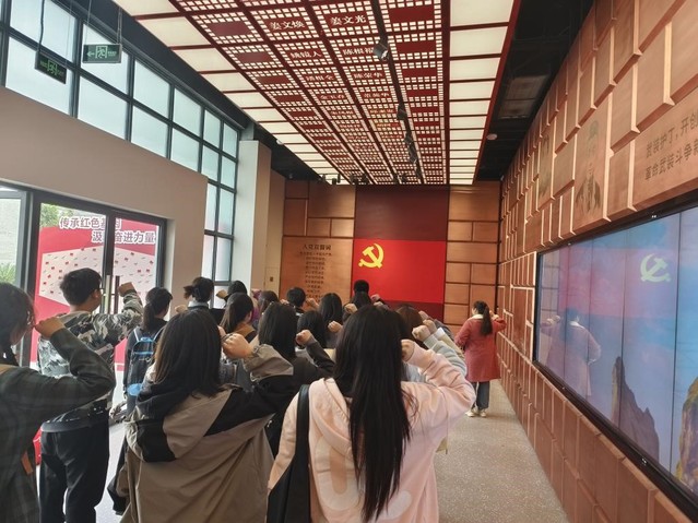 参观最后,在带队老师的领誓下,各位党员重温了入党誓词。大家举起右手,庄严宣誓,铿锵有力的誓言在展厅内回荡。这一刻,党员们的心灵得到了净化,信仰得到了升华,更加坚定了为共产主义事业奋斗终身的信念。本科生金融党支部郭婉琪表示,自己被先烈们坚定的信念、无私的奉献以及无畏的牺牲精神所震撼,也深感自己肩上的责任重大。本科生会计党支部龚林玥表示,作为新时代的共产党员,要继承和发扬先烈们的革命精神,不忘初心、牢记使命,为党和人民的事业贡献自己的力量。