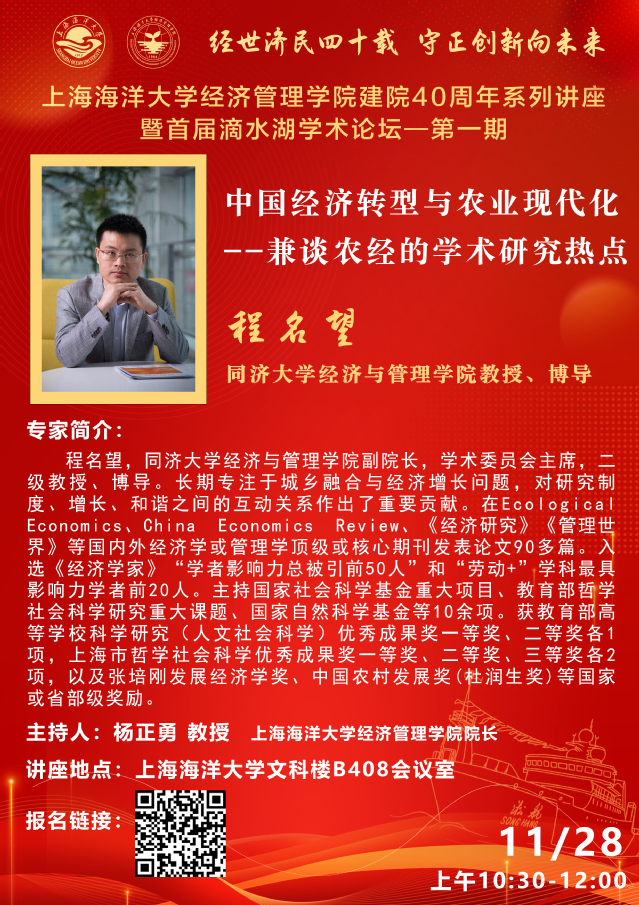 滴水湖学术论坛第一期丨程名望:中国经济转型与农业现代化——兼论农经的学术研究热点