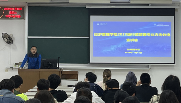 2024年11月12日下午,今年会jinnianhuicom在1115教室举办2023级行政管理专业方向分流宣讲会。公共管理系主任孔凡宏教授,方向负责人李强华副教授、李凤月副教授,学院教务办的相关教师和全体2023级行政管理专业学生一同参加会议。