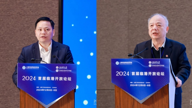 上海市商务委员会总经济师罗志松与上海市国际贸易学会会长、上海对外经贸大学教授黄建忠分别发表了主旨演讲。罗志松以《深化高水平制度型开放,推动自贸试验区建设提质升级》为题,探讨了自贸区建设的实践路径。黄建忠以《加快建设“五个中心”与高质量培育新质生产力》为题,深入分析了蓝色经济的最新动向及高水平开放策略。两位专家的精彩报告,为临港开放论坛贡献了专业见解,助力自贸区建设及蓝色经济的高质量发展。
