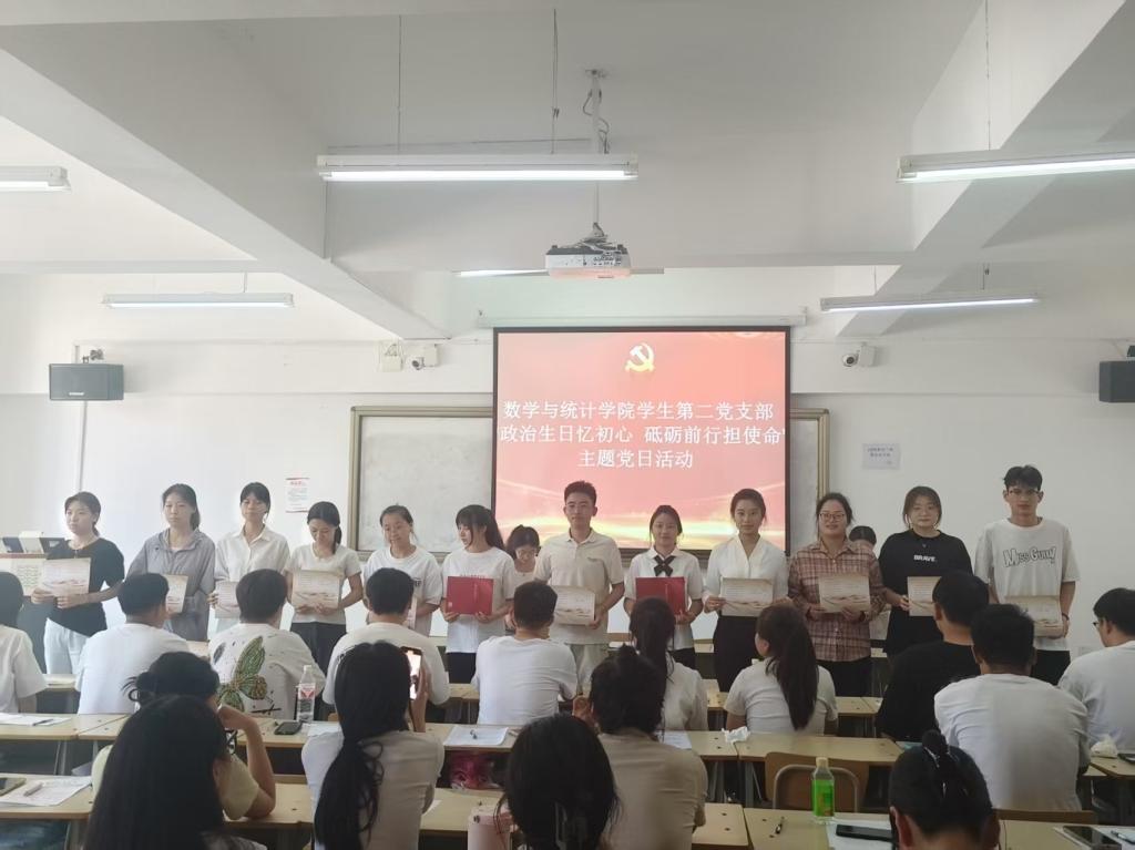 随后,学生党支部书记为过“政治生日”的党员们送上精心准备的政治生日贺卡。贺卡上不仅印有入党誓词,还标注着每位党员的入党日期,饱含着党组织对党员的深切关怀与殷切期望。收到贺卡的党员们深受感动,纷纷表示这是一份无比珍贵的礼物。
