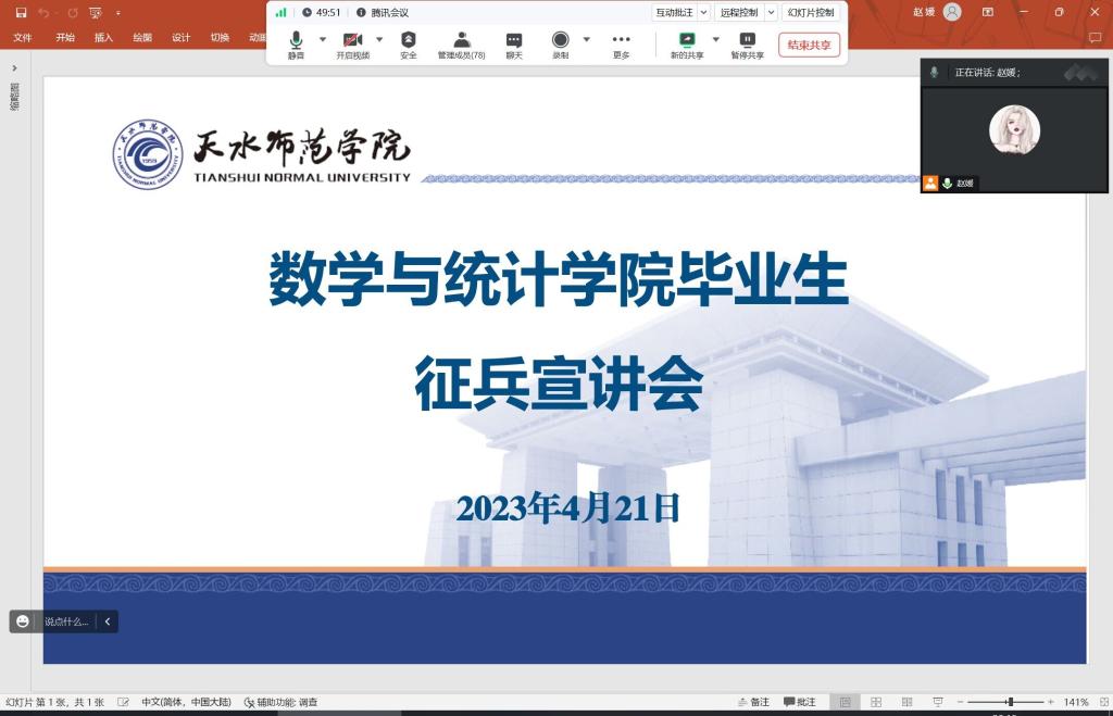 “携笔从戎 无上光荣”,为激发学院学生报效祖国、应征入伍的热情,帮助大学生了解、掌握应征入伍相关政策,营造应征光荣的浓厚氛围。2023年4月21日,taptap点点官网举办了2023年下半年大学生应征入伍政策解读宣讲会。宣讲会通过线上线下相结合的方式召开,会议由学院分管征兵工作的辅导员赵媛老师主持,学院26个班级的班长、团支书、大数据专业学生及学院有应征入伍意愿的学生参加了会议。