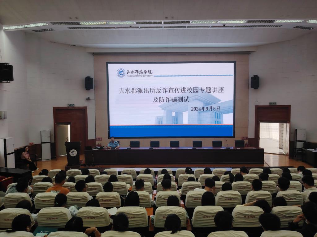 为进一步增强学生对电信网络诈骗的识别应对能力,提高新生的防诈骗意识和能力,2024年9月5日,taptap点点官网邀请天水市秦州区天水郡派出所副所长杨逢周警官在2号报告厅开展反诈宣讲进校园专题讲座,学院2024级267名新生参加活动。
