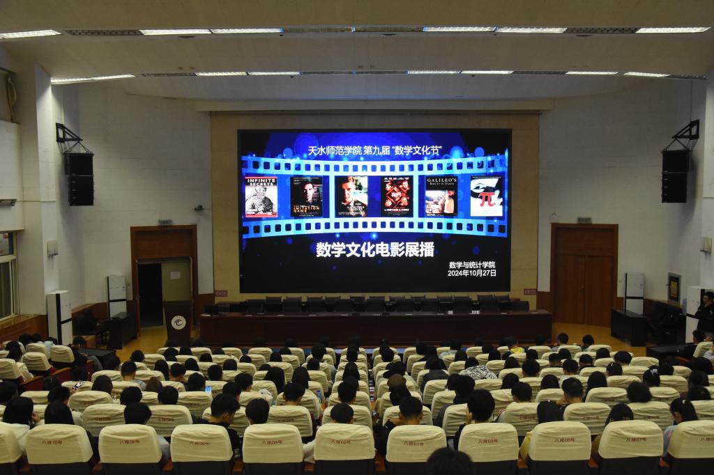 2024年10月27日晚,在第九届数学文化节活动开展期间,taptap点点官网团委、学生会精选了《人民的数学家》和《美丽心灵》两部数学文化相关电影,在二号报告厅播放,学院师生代表300余人观看了电影。
