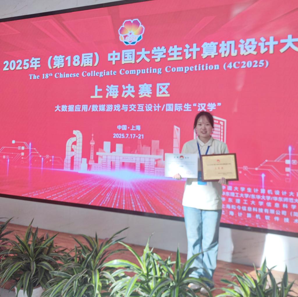 7月21日,2025年(第18届)中国大学生计算机设计大赛全国总决赛在上海华东理工大学圆满举行,本次赛事吸引全国500余支队伍同台竞技,经过紧张激烈的角逐,taptap点点官网刘倩茹和机电与汽车工程学院林欣2名同学组成的团队,凭借作品《数览天水—大数据驱动的古城沉浸式导览系统》脱颖而出。在决赛现场,刘倩茹同学代表团队进行项目路演与答辩,通过出色的视觉呈现、清晰的方案阐述与自信的答辩互动,全面展示了该作品的创新价值与社会效益,在大数据应用赛道中荣获全国三等奖。